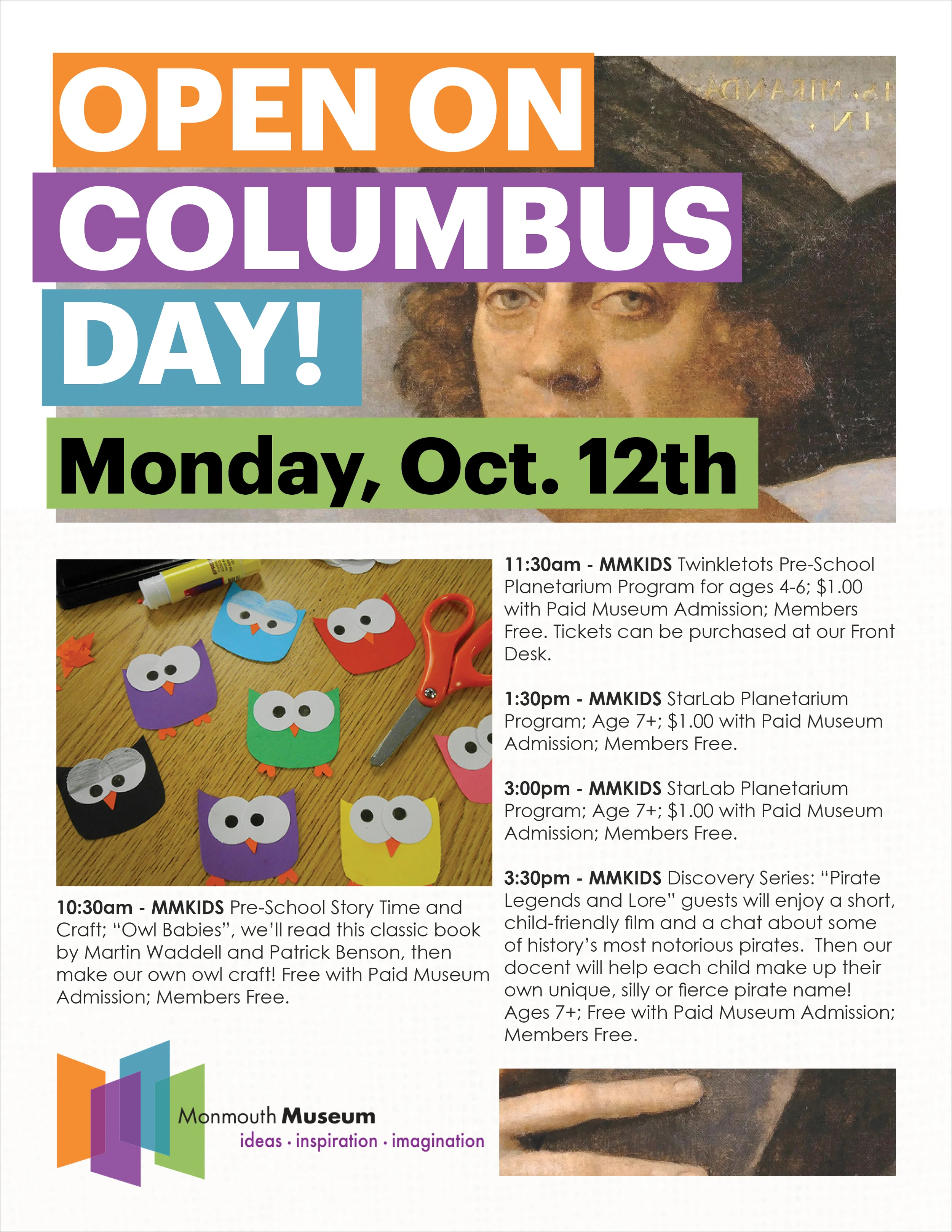 The Monmouth Museum presents changing art, history, and science exhibitions to educate and entertain while providing a destination for creative expression and life-long learning to the diverse community it serves.